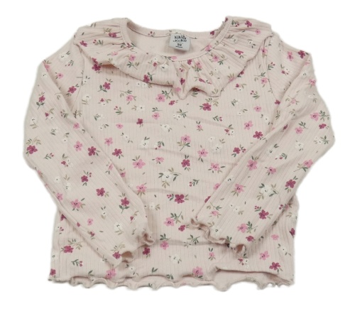 Svetloružové rebrované tričko s kvietkami a volánikom Kiki&Koko