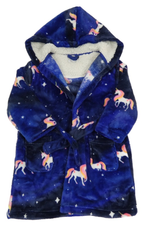 Zafírový chlpatý župan s jednorožcami a kapucňou Bluezoo