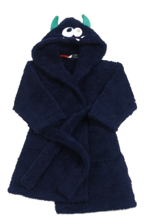 Tmavomodrý chlpatý župan s kapucí - príšerka