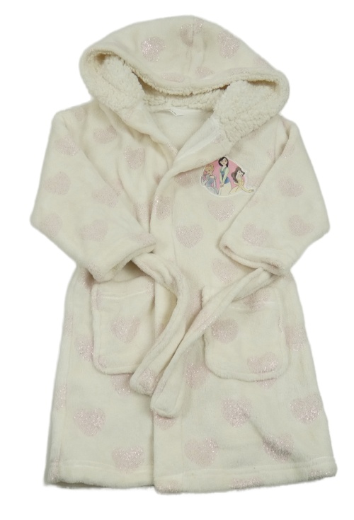 Smotanový chlpatý župan so srdíčky, princeznami a kapucňou M&S