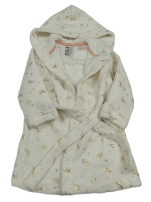 Biely chlpatý župan s jednorožcami a kapucňou H&M