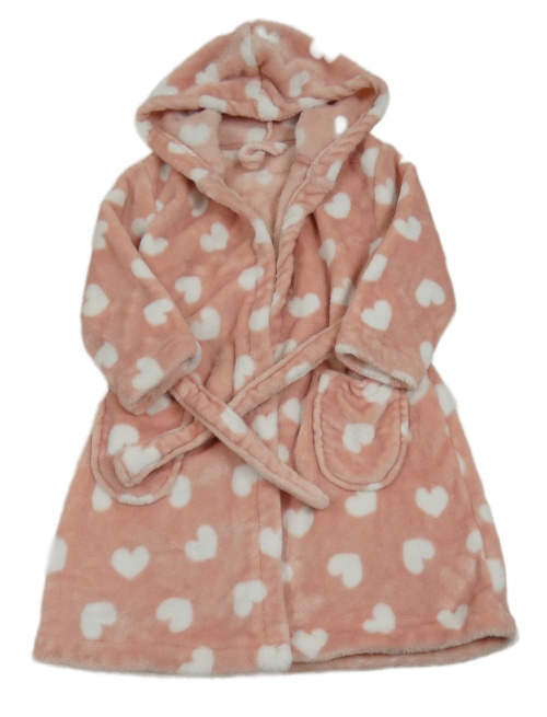 Svetloružová -biely plyšový župan so srdiečkami a kapucňou George