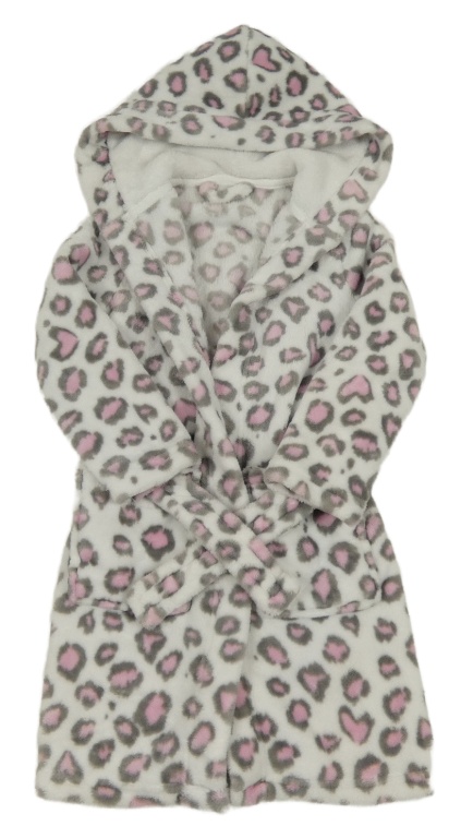 Bielo-sivo-ružový leopardí chlpatý župan s kapucňou Dunnes