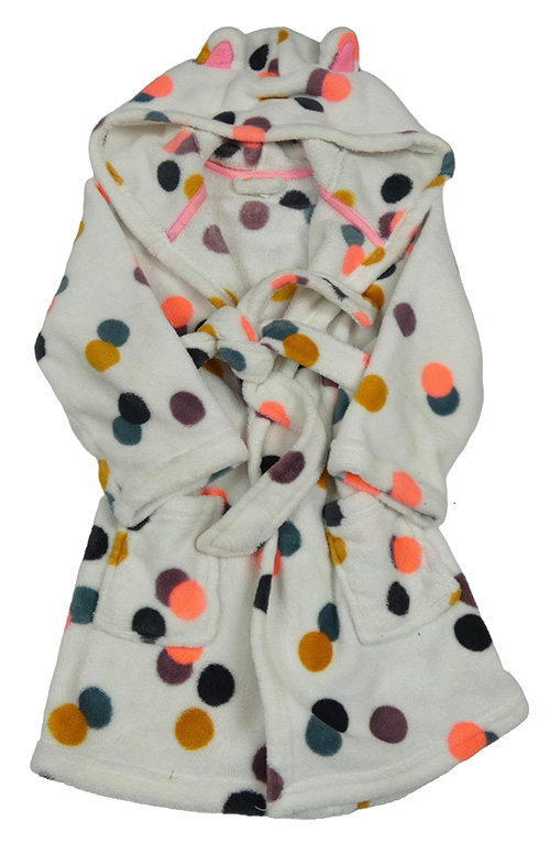 Biely bodkovaná ý chlpatý župan s kapucňou Hema
