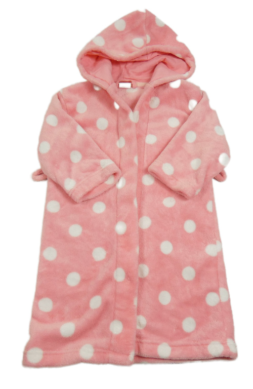Ružovo-biely bodkovaná ý plyšový župan s kapucňou Kids
