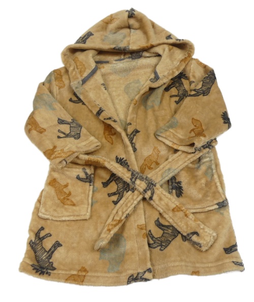 Svetlohnedý plyšový župan so zvieratkami a kapucňou