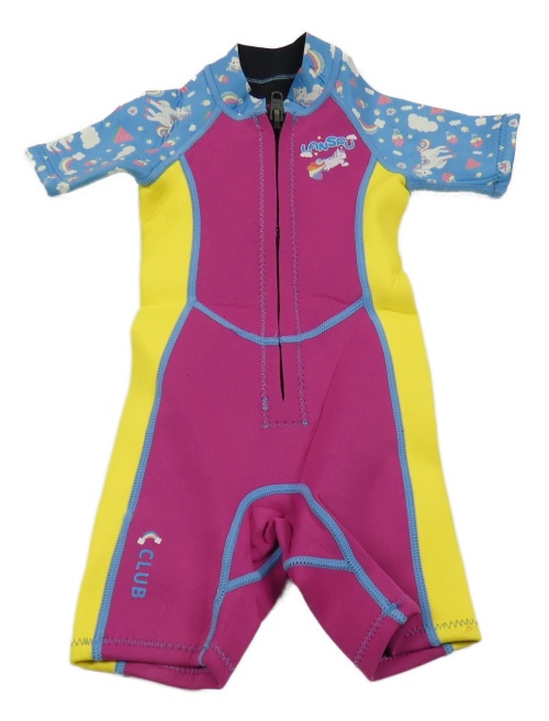 Růžovo-žluto-modrý neopren s jednorožcami