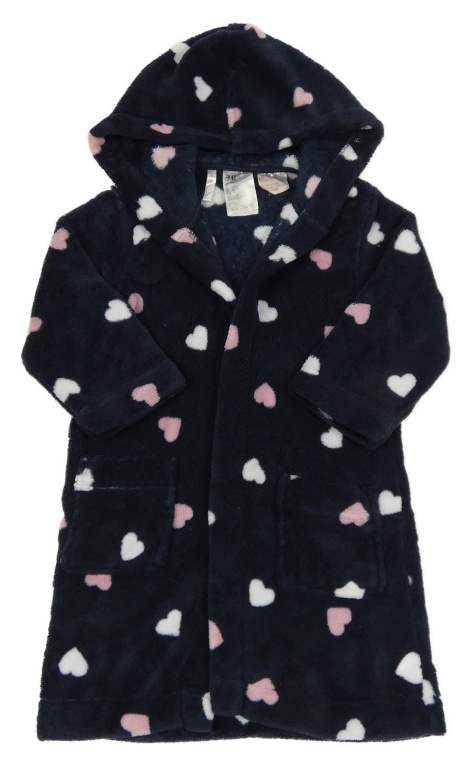 Tmavomodrý chlpatý župan so srdiečkami a kapucňou
