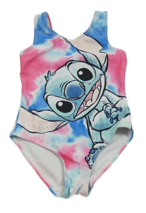 Ružovo-modré batikované jednodielne plavky so Stitchem George