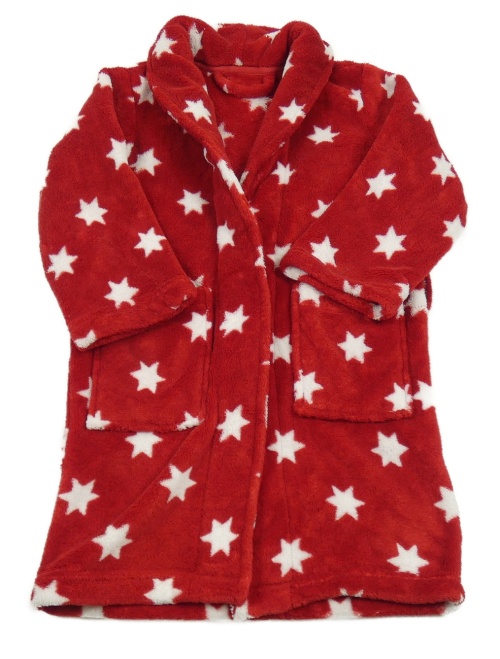 Červený chlpatý župan s hviezdami