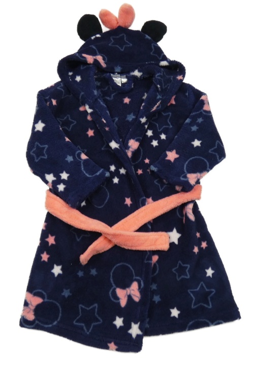 Tmavomodrý plyšový župan s Minnie a hviezdičkami a kapucňou Disney