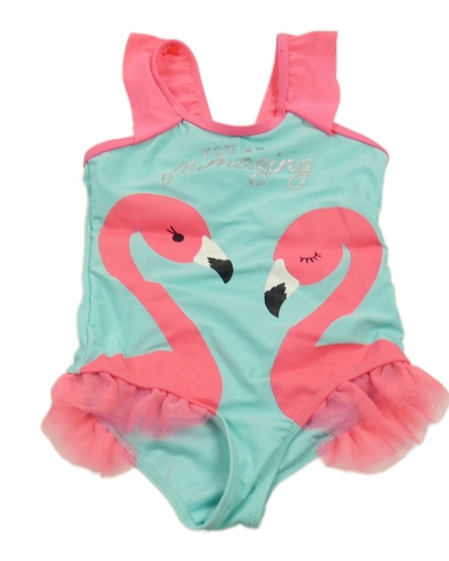Modro-ružové neónové jednodielne plavky s plameňáky a volánikmi Dopodopo