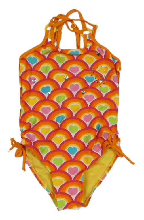 Farebné vzorované jednodielne plavky so srdiečkami a kamienkami
