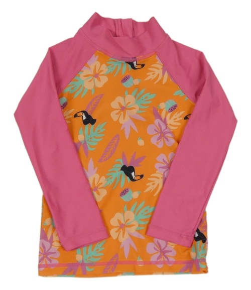 Oranžovo-ružové UV tričko s kvetmi a tukanmi Kuniboo