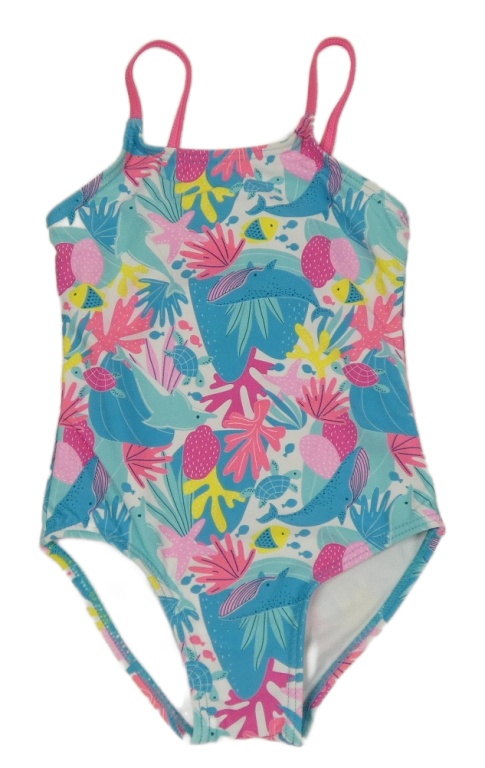 Bielo-azurové jednodielne plavky s mořskými živočichy Pusblu