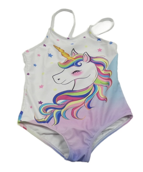 Bielo-farebné jednodielne plavky s jednorožcom