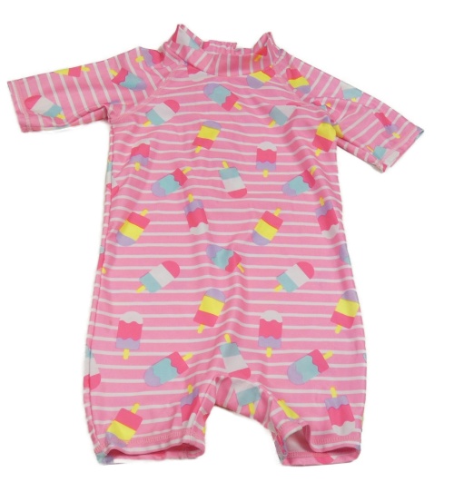 Ružovo-biely pruhovaný kraťasový UV overal so zmrzlinami Kiki&Koko