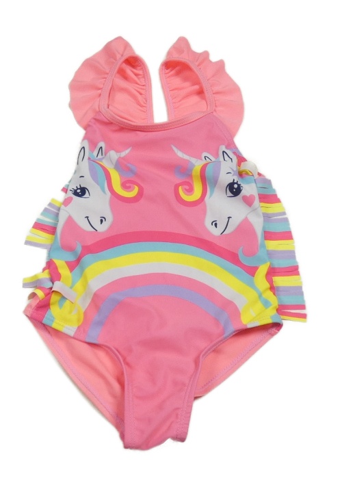 Neónově ružové jednodielne plavky s jednorožcami a strapcemi