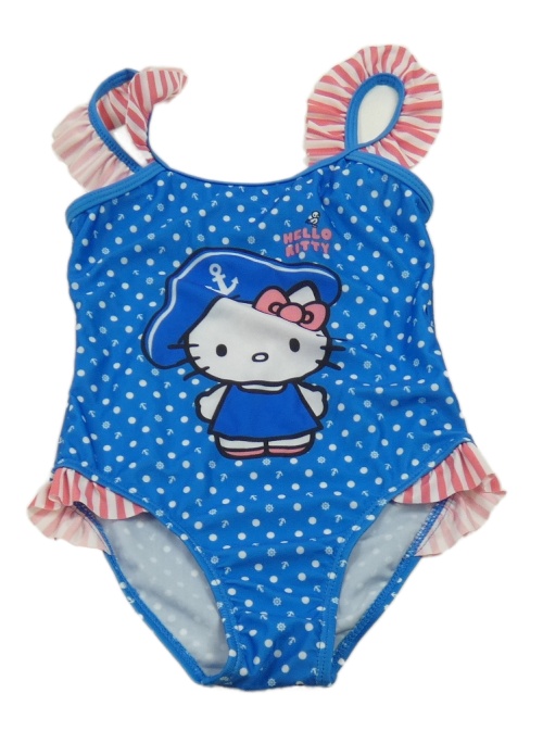 Modro-bielo-ružové bodkovaná é jednodielne plavky s Hello Kitty C&A