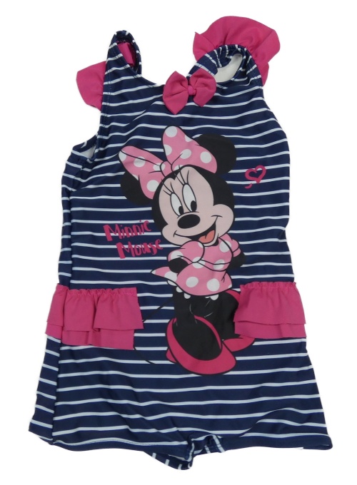 Tmavomodro-biely pruhované nohavičkové plavky s Minnií Disney