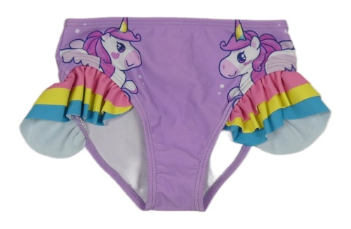 Fialovo-farebné plavkové nohavičky s jednorožcami a volánikmi Shein
