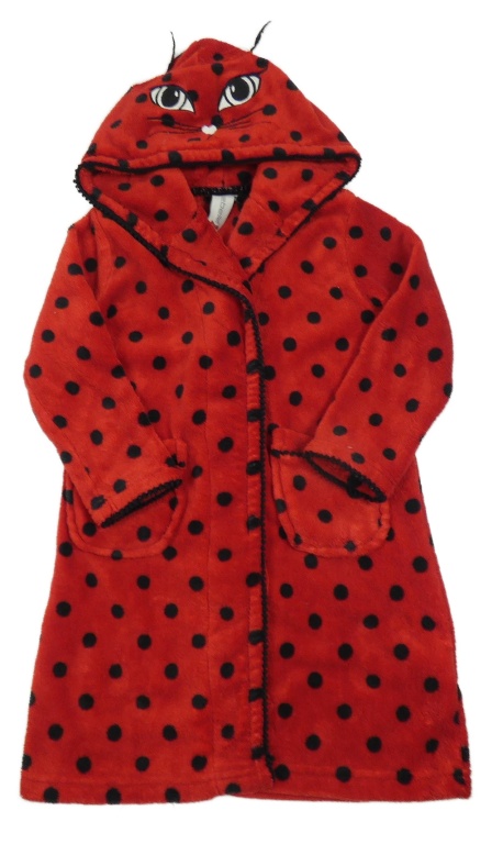 Červeno-čierny bodkovaná ý plyšový župan s kapucí - mačička