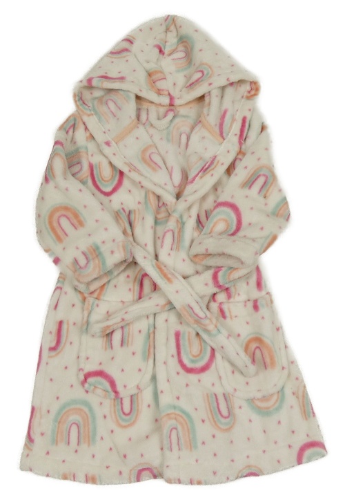 Bielo-ružový vzorovaný plyšový župan s duhami a kapucňou George