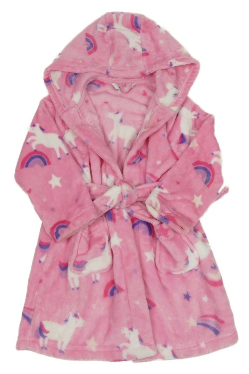 Ružový chlpatý župan s jednorožcami a kapucňou