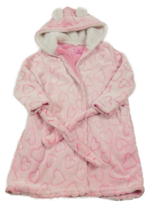 Ružový plyšový župan so srdiečkami a kapucňou Yd.