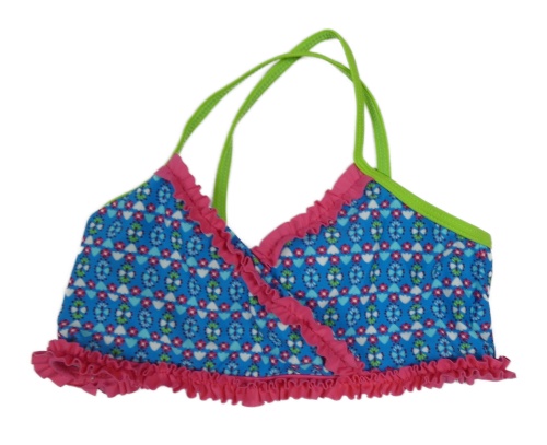 Modro-růžovo-zelený vzorovaný horní díl plavek