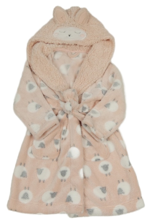 Ružový chlpatý župan s ovcemi a kapucňou George