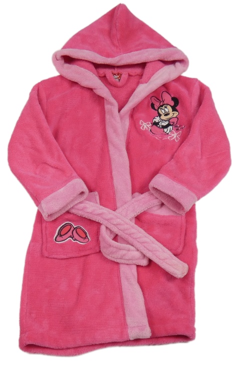 Tmavorůžovo-ružový chlpatý župan s Minnie a kapucňou Disney