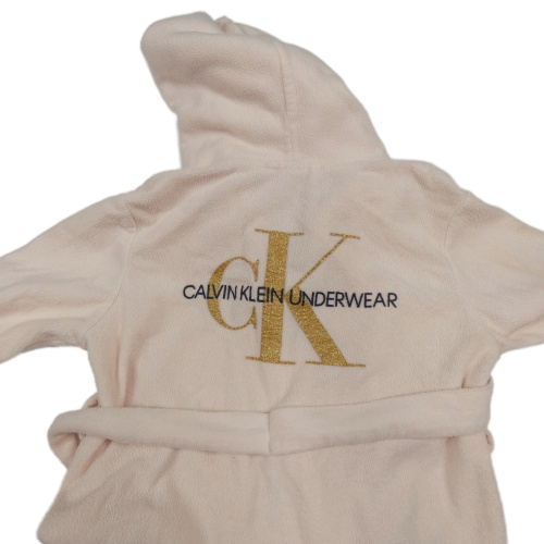 Svetloružový fleecový župan s kapucňou Calvin Klein