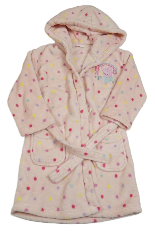 Svetloružová -farebný bodkovaná ý plyšový župan s Peppa Pig a kapucňou M&S