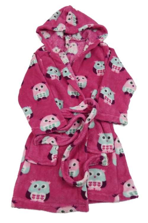Fuchsiový chlpatý župan so sovičkami a kapucňou