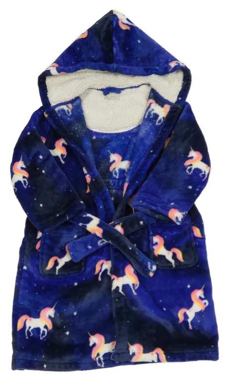 Tmavomodrý chlpatý župan s jednorožcami a kapucňou Bluezoo
