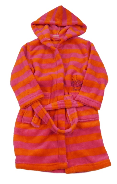 Tmavorůžovo/oranžový pruhovaný plyšový župan s mořským živočichem a kapucňou alive