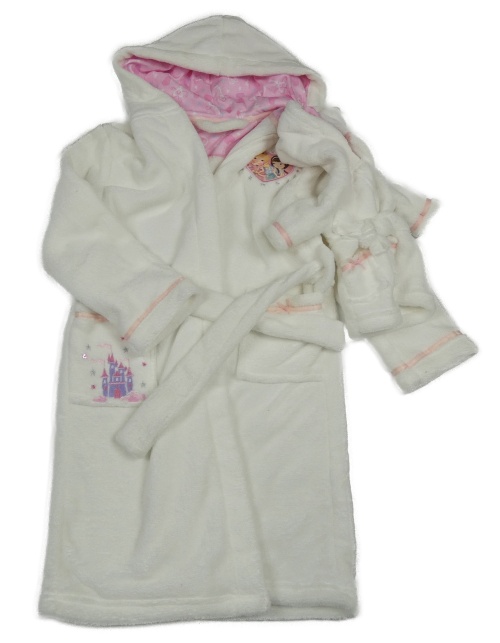 Nové - 2Set - Biely plyšový župan s princeznami a kapucí + župánek na panenky