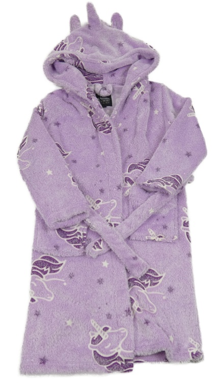 Lila plyšový župan s jednorožcami a kapucňou