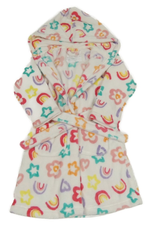 Biely kvetovaný chlpatý župan s kapucňou Nutmeg