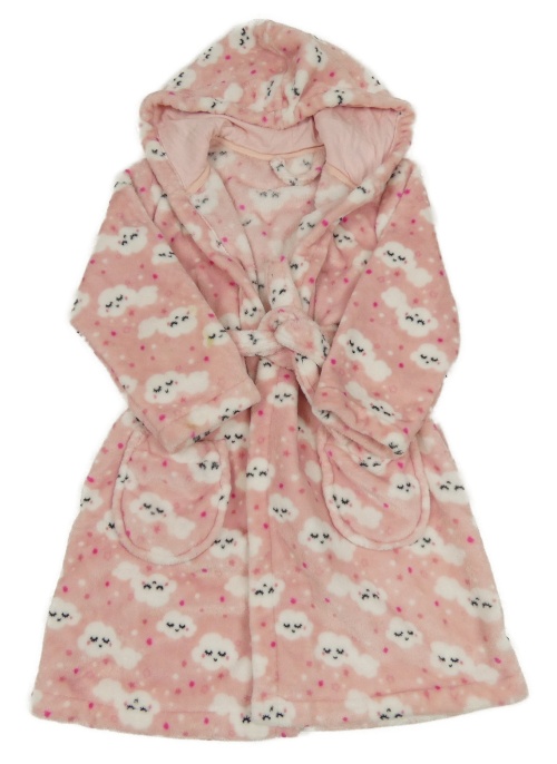 Svetloružový chlpatý župan s mraky a kapucňou George