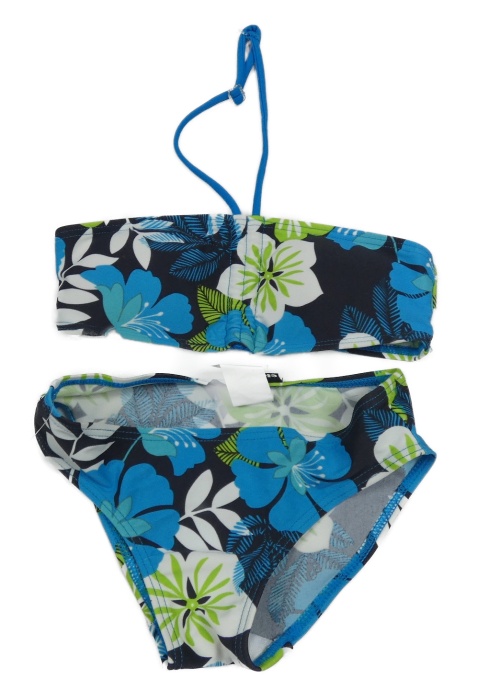 Tmavomodro-bielo-zelené kvetované dvoudílné plavky Elemar