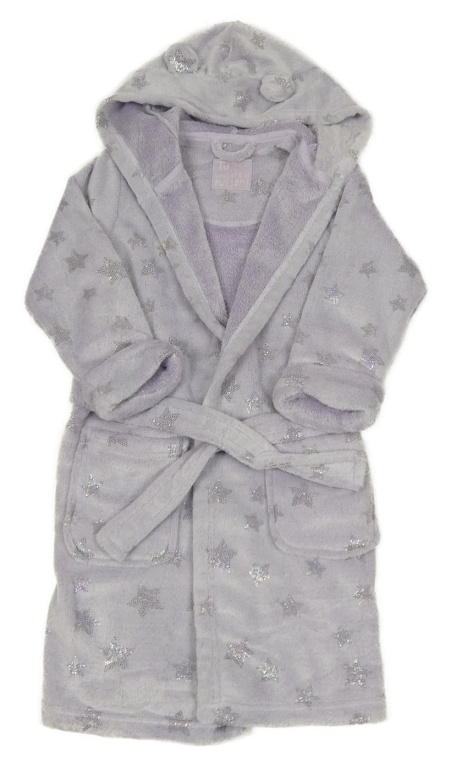 Lila chlpatý župan s hviezdami a kapucňou Tu