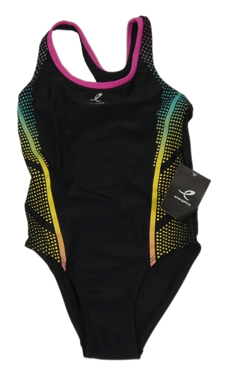 Nové - čierno-farebné jednodielne plavky so vzorom energetics