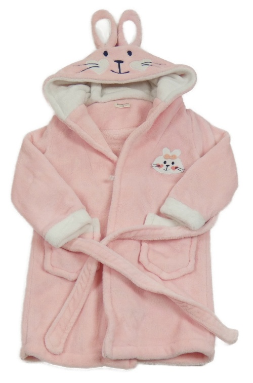 Ružový chlpatý župan s kapucí - králik