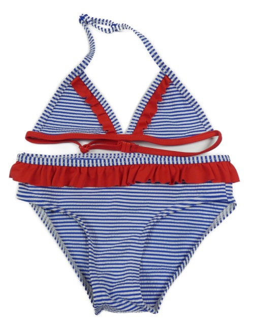 Modro-bielo-červené pruhované dvoudílné plavky s volánikmi C&A
