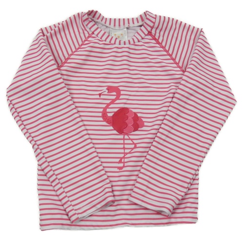 Bielo-ružové pruhované UV tričko s plameňákem Pusblu