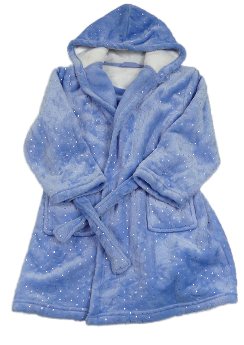 Modrofialový trblietavě bodkovaná ý plyšový župan s kapucňou Nutmeg