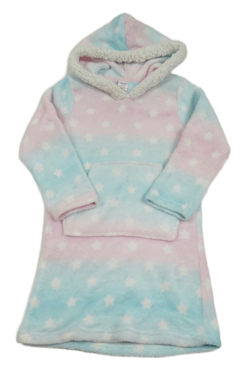 Světlemodro-ružový chlpatý župan s hviezdami a kapucňou Peacocks