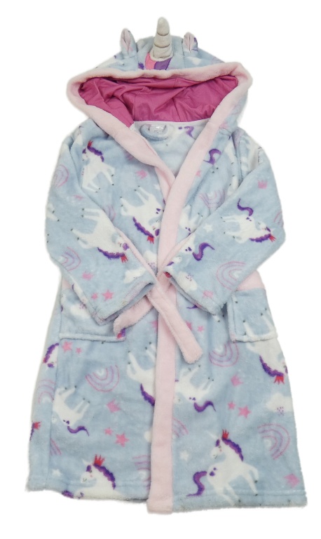 Svetlomodrý chlpatý župan s jednorožcami a kapucňou